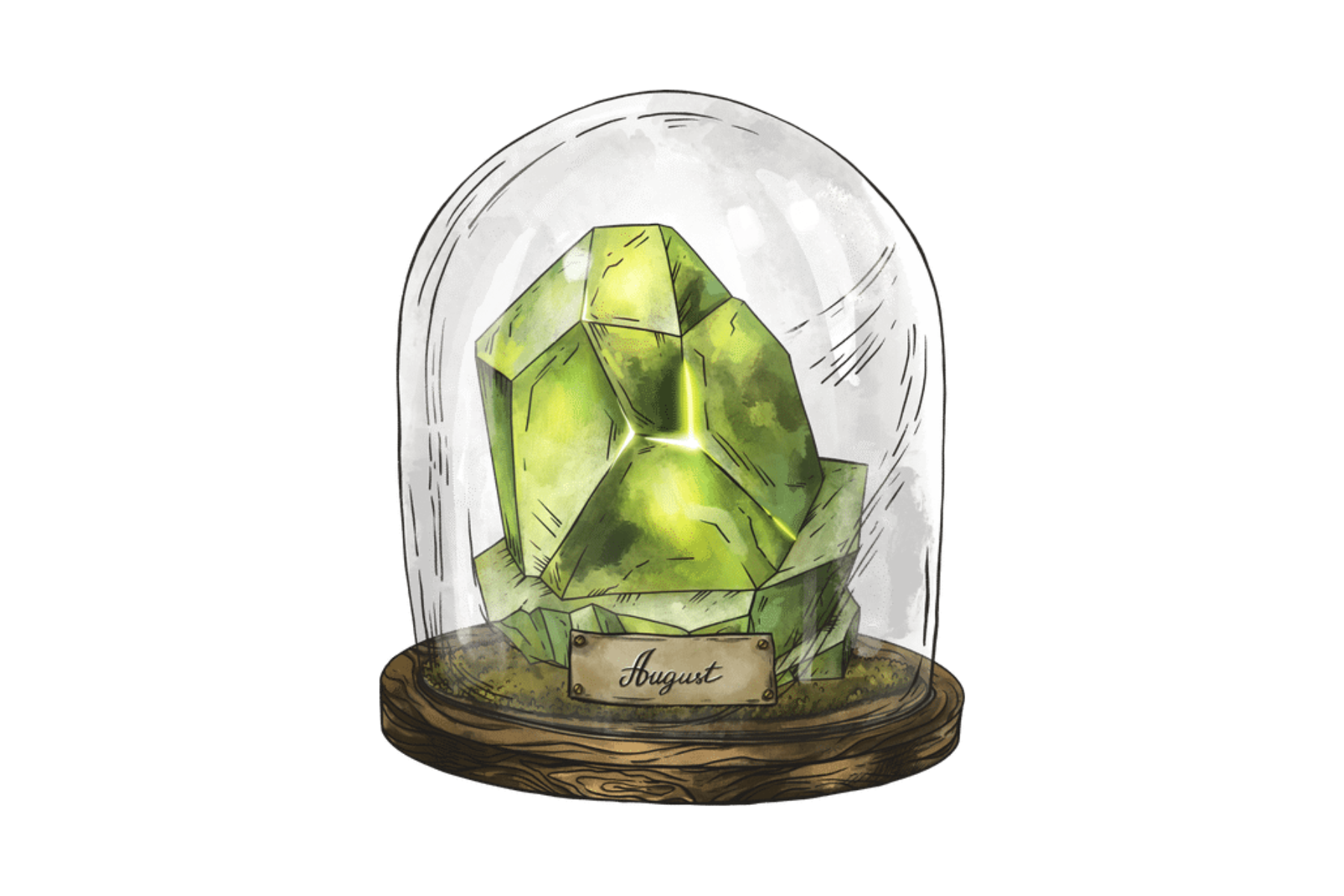 Peridot represents strength, confidence, and positive vibes. It is associated with good luck, prosperity, and happiness.