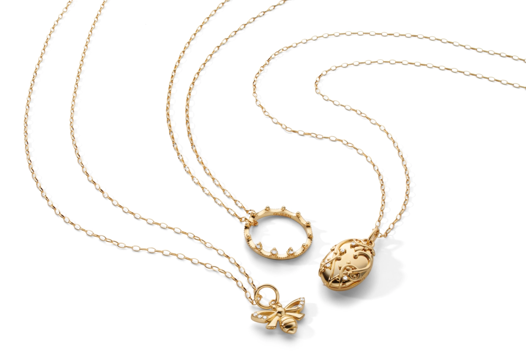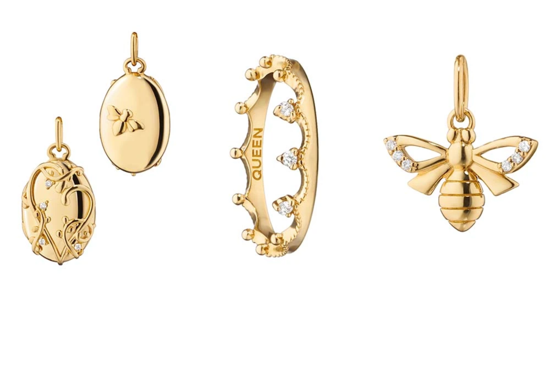 The styles can be worn in different ways. For example, the ring can be worn as a pendant on a chain, and the locket and bee can be worn as charms on a bracelet. Prices for 18-karat goldpieces range from $815 to $3,250, and prices for sterling silverrange from $160 to $685.