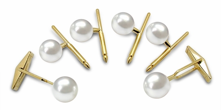 Pearl cufflinks are a type of men's jewelrythat features pearlsas the centerpiece. The pearls can be natural or cultured, and they are set in metal, usually goldor silver, to create a stud-like accessory that is worn with French cuff shirts.