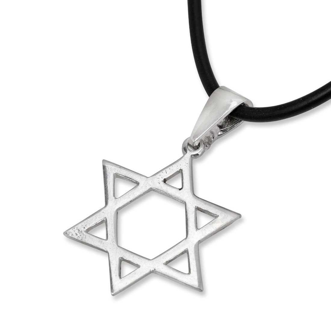 A sterling silver Star of David pendant suspended from a chain. The Star of David is a significant symbol in Judaism, often representing the Jewish faith and identity. Elegant and understated, making it a meaningful gift for someone of the Jewish faith.