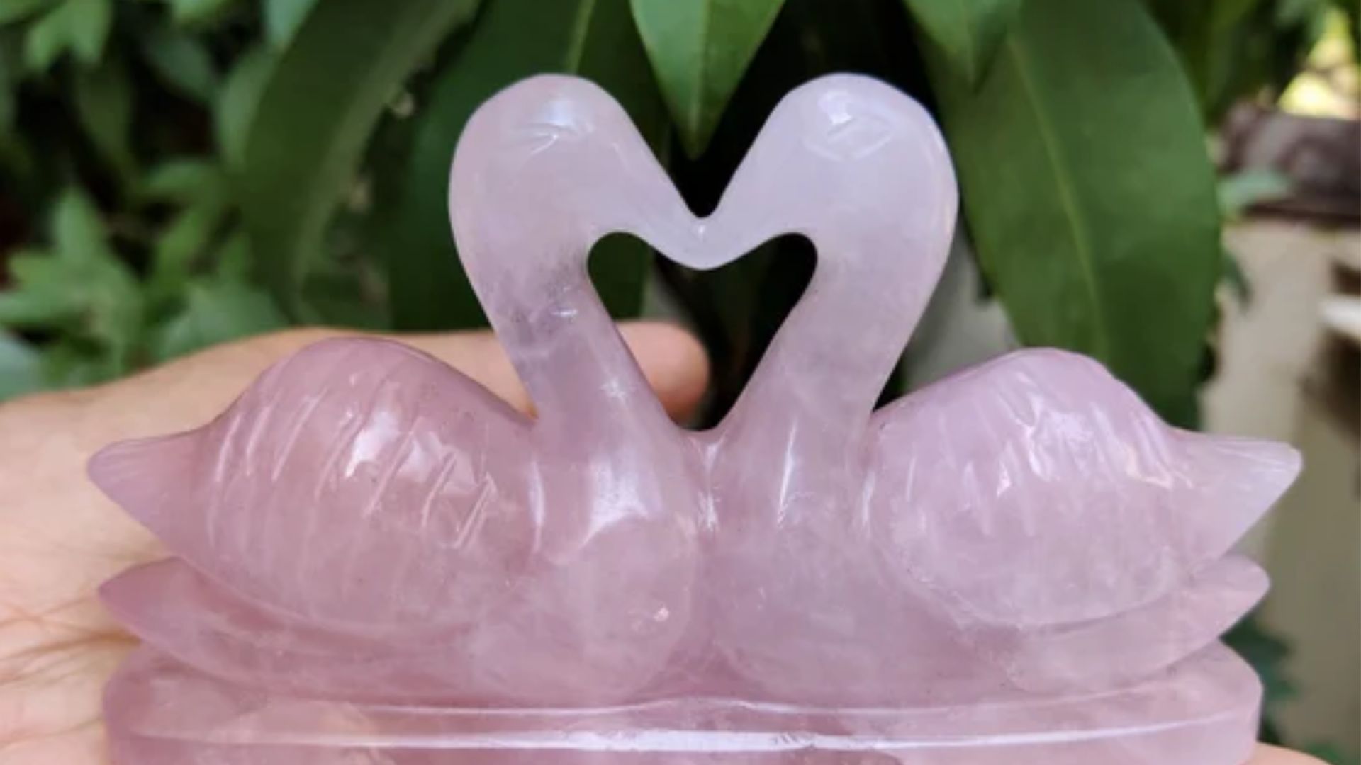 The swan, embodying grace and love, gracefully pairs with rose quartz, a gemstone associated with emotional healing.