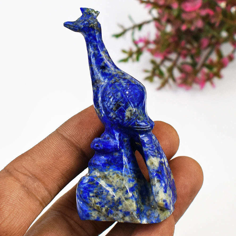 Lapis lazuli, with its deep blue hue and golden flecks, has been revered since ancient times. When carved into the form of a peacock, it symbolizes wisdom, self-expression, and protection. This combination of the regal peacock form with the rich blue of lapis lazulicreates a stunning and meaningful piece of art.