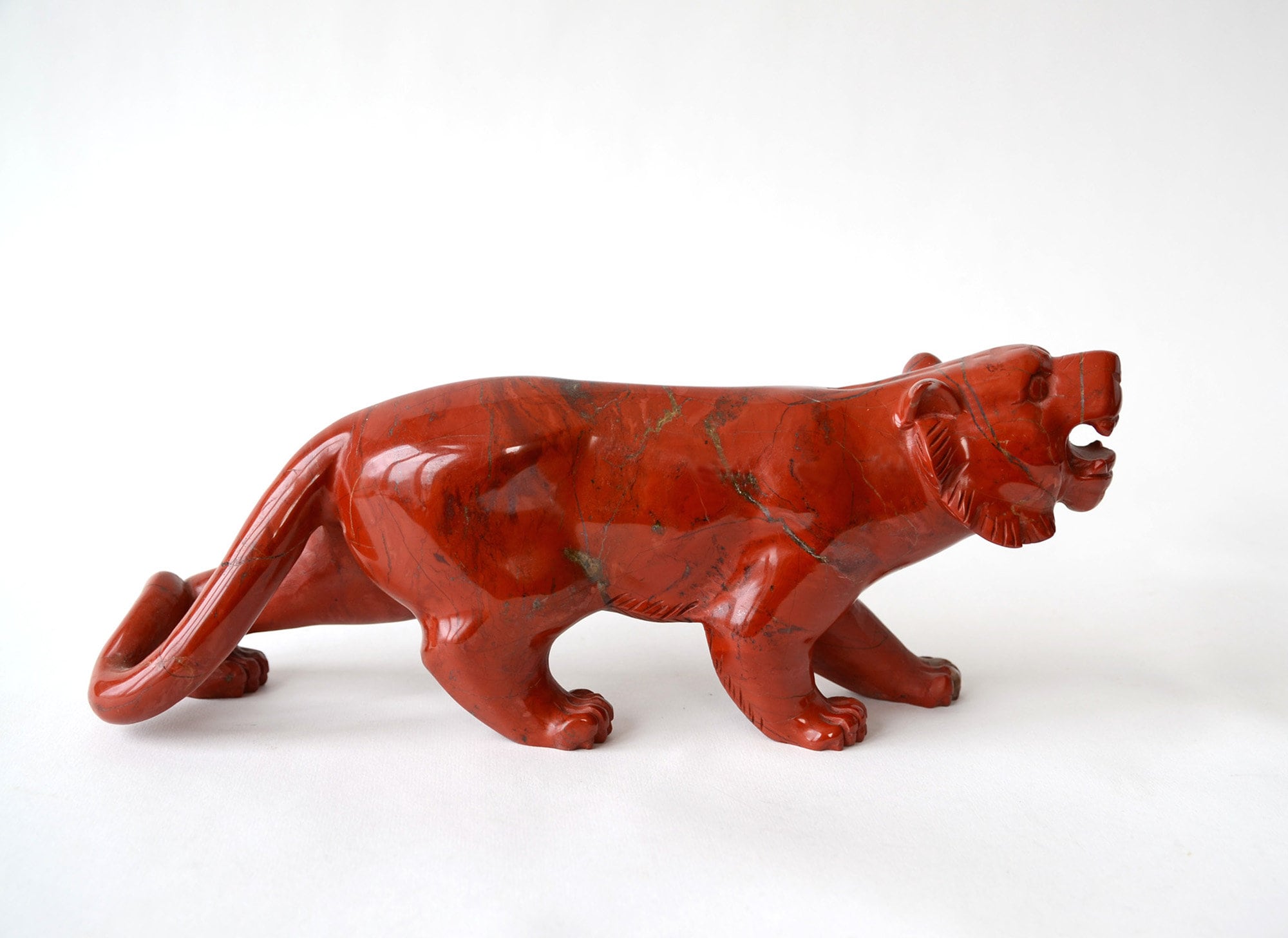 Red jasper, with its earthy red tones, is often carved into the form of a tiger. Tigers are seen as symbols of strength, courage, and protection in many cultures. When represented in the rich, warm hues of red jasper, the carving exudes a powerful energy of resilience and determination.