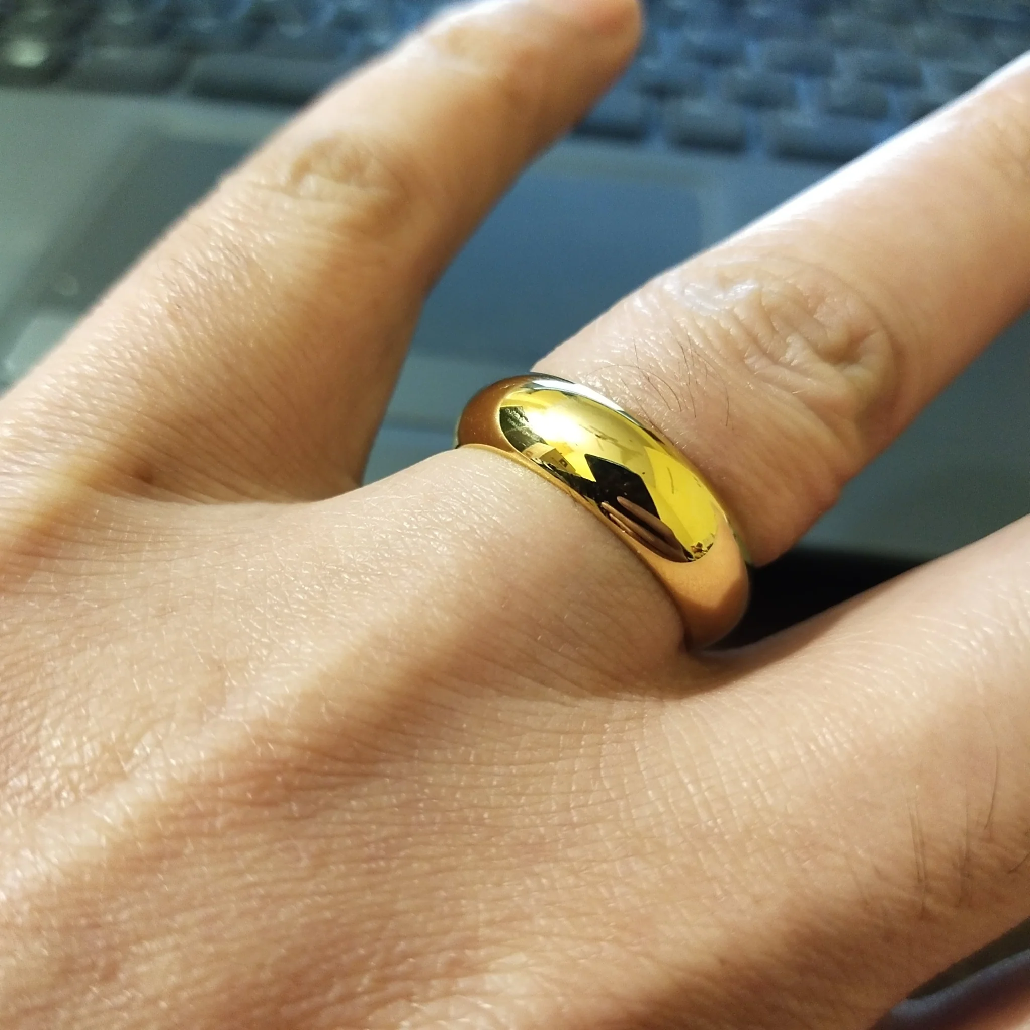 Titanium rings are one of the lightest types of metal you can buy right now. This can be important if you don't usually wear a lot of jewelry or if your hands are small. A titanium ring won't make your hand feel heavy or big.